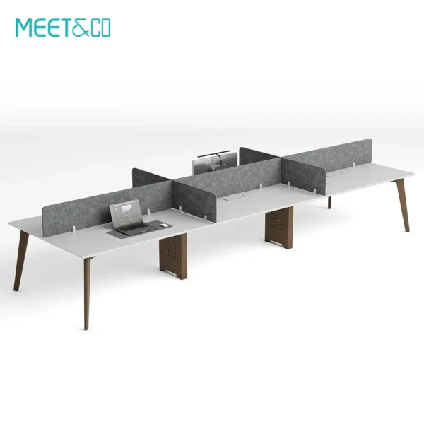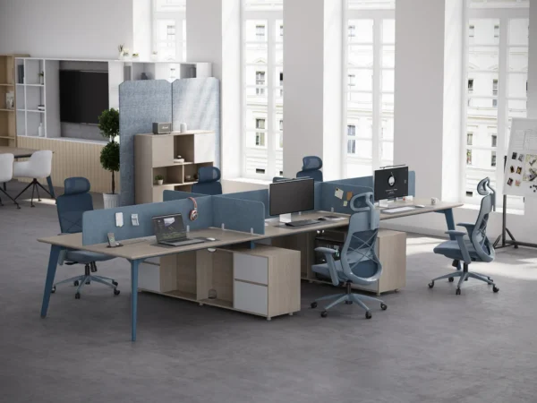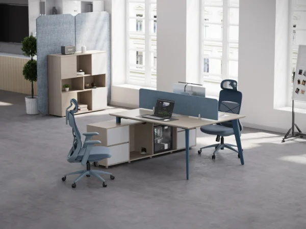 The Reco Series D Office Workstation is the definitive modular solution for evolving teams. Available in configurations for 1 to 6 people, it features a 25mm E1-grade eco-friendly top with elegant 45-degree beveled edges. Integrated acoustic panels in Moonlight Grey or Navy Blue provide essential privacy, while flexible cable spines keep cords organized. Choose with or without mobile cabinets to create a tailored, professional environment that balances collaborative energy with individual focus.