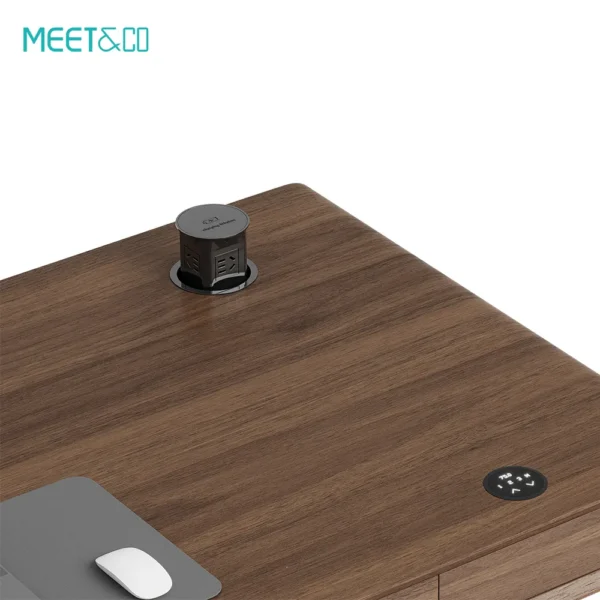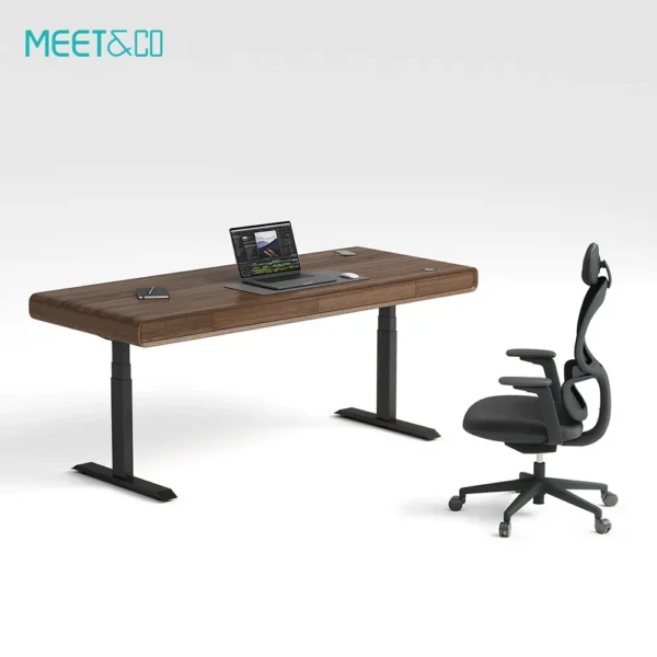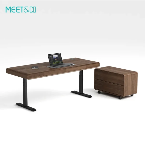 Elevate your workspace with the Sendi Series E Electric Standing Desk. Dual motors provide smooth sit-to-stand adjustment, while the Walnut Wood Grain top, steel frame, and wireless charging combine style and functionality for home or office.